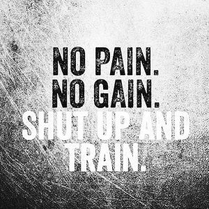 No pain, no gain (or no gain without pain) is an old proverb, used since the 1980s as an exercise motto that promises greater value rewards for the price of hard and even painful work. One must be willing to endure some inconvenience or discomfort in order to achieve worthwhile goals. = nothing ventured nothing gained. No pain, no gain only applies to exceptional situations and sometimes in competitive sports. This suffering may be in a physical or mental sense. I know these training sessions are hard work, but you've got to do it if you want to be a contender for the championship. Under this conception competitive professionals, such as athletes and artists, are required to endure pain. What made you want to look up no pain, no gain? Fonda initiated the aerobics workout craze with a series of videos, in which she proclaimed the ethic no pain, no gain, and feel the burn. It means a lot of hard work may be needed and it may hurt you to do it, but in the end there is victory and something worth while will come of all that hard work. Please tell us where you read or heard it (including the quote, if possible). Progress and developmentsynonym ways of encouraging or telling someone to do somethingsynonym main entry: While it is generally true that very hard training is needed in most areas to achieve big training gains, pain should always be avoided.